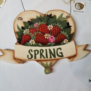 Welcome Spring Wood Wall Hanger Sign Heart Strawberries Country