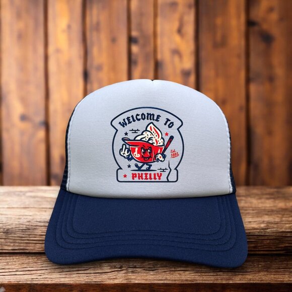Welcome To Philly Middle Finger Mens Trucker Hat Eagles Phillies Flip The Bird