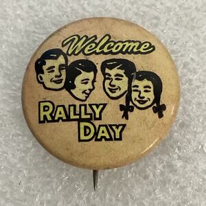 Welcome To Rally Day 1” Pin Pinback Button Vintage Standard Publishing