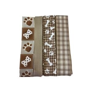 • Brown & White Checkered Paw Print & Bone Ribbon