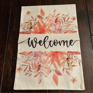 This offering is a “Welcome” flag or wall hanging. The item is made out of canvas material. The size is 13” x 19”. This flag is new and it comes in it’s original plastic. (I removed it got photos.)