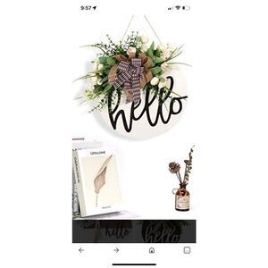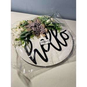 Brand new in package. 12”x 12”. Wooden with ribbon and faux florals.