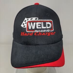 Weld Racing Hard Charger Strapback Hat Black Red Embroidered Logo OSFA