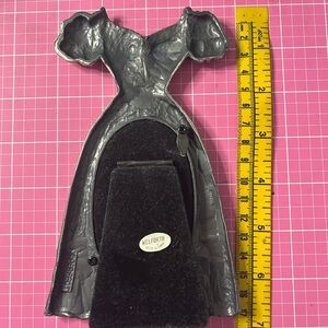 Stylish dress-shaped photo frame in shimmering silver tone measured approximately 7” Ideal for a touch of elegance in your home. In good condition please see pictures