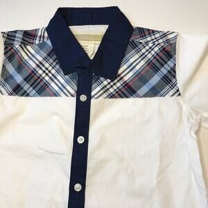 Really lovely and high quality Well Dressed Wolf shirt. Features plaid shoulder accents. 100% cotton material. In excellent condition. Smoke free and pet friendly (non-shedding) home.