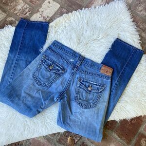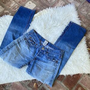 Well Loved True Religion Jordan Button Fly Five Pocket Destroyed Jeans Sz 27