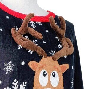 Well Worn 3D Antler Ugly Christmas Sweater Rudolph Chimney Holiday Party L