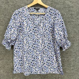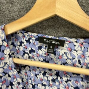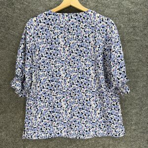 Well Worn Blouse Women S Small Blue Floral V-Neck 3/4 Sleeve Pullover Casual