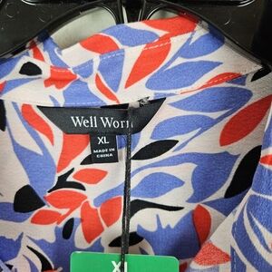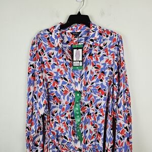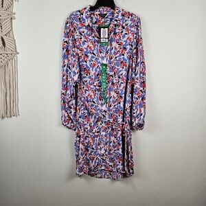 Well Worn Crepe Tie-Belt Button Down Dress XL NWT Red White Blue Patriotic