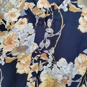 Well Worn Navy Floral Blouse Sz 3X Button Up Long Sleeve V-Neck Sheer Boho
