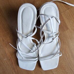 Well Worn White Olivia Signature Lace Up Block Heels Size 6