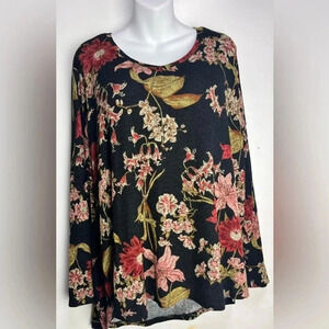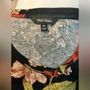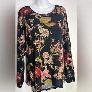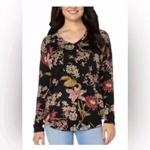 Well Worn Women's Top Pullover Floral Stretch Long Sleeve V-Neck