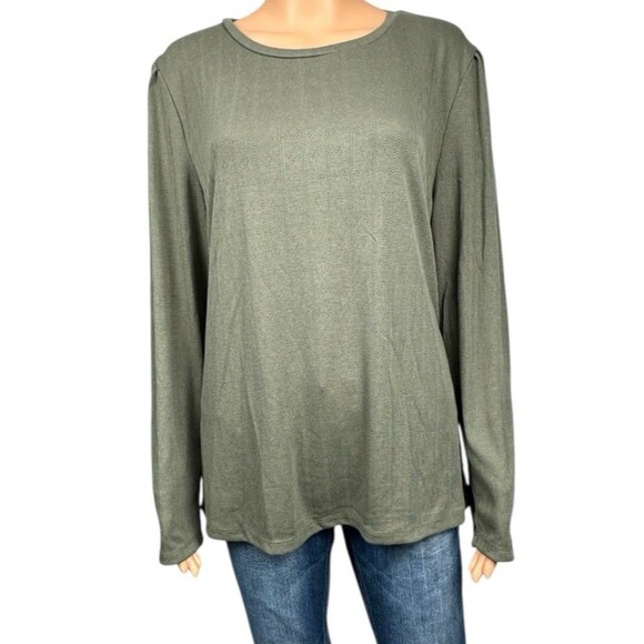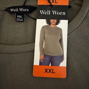 Well Worn Womens XXL Green Long Sleeve Shirt Crewneck Top Blouse New