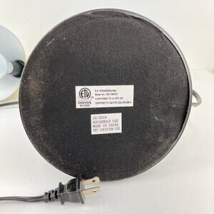 This classic brass lamp would look good on any desk. It stands approximately 20" high with a weighted base that is 6.5" in diameter and 1.25" high. Base is black with brushed brass. There is a scrape on the lamp shade, see photos.