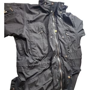 Wellensteyn Jacket Mens Large Black Hooded Windbreaker Zip Front Multi Pocket Utility Coat German Gorpcore Germany GolfJacke Techwear Eurofashion