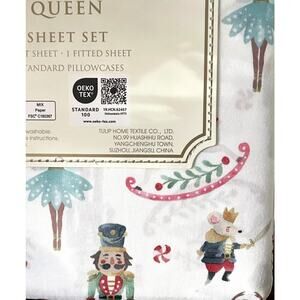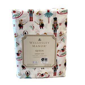 Wellesley Manor QUEEN Sheet Set Nutcracker Ballet Toy Soldier 4pc Xmas Bedding