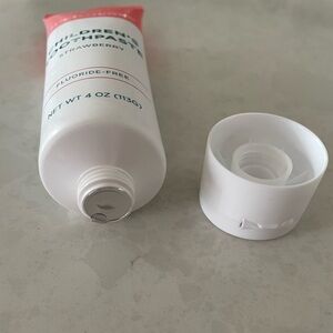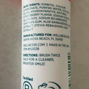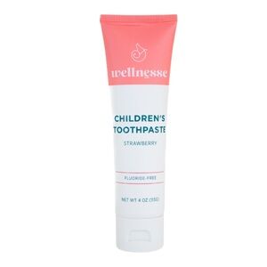 New with seal intact, WELLNESSE, 4 oz, fluoride free, children’s toothpaste in strawberry flavor.