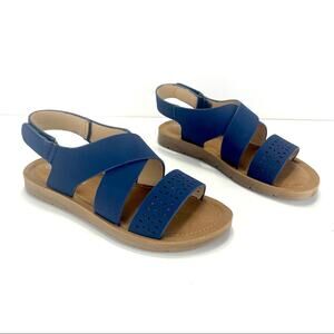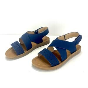 Wells Comfort Women Sandal Sz 8 Blue Crisscross Straps Padded Footbed Adjustable