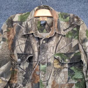 Condition: 100% Cotton long sleeve button-up hunting shirt with a camo pattern. No stains or rips!