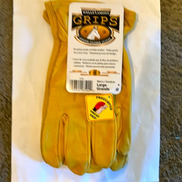 Wells Lamont GRIPS Premium Leather Gloves NWT Natural Sz Large/Grande Palm Patch for extra wear.