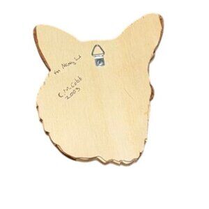 Handcrafted wooden plaque featuring a Intarsia 3D effect of a Welsh Corgi, signed by artist CM Cobb, 2003. A unique and charming addition to any home decor, ideal for dog lovers and art enthusiasts alike.