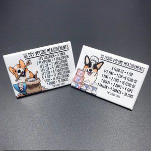 This cute, magnet set contains 2 high quality handmade magnets. There is a dry conversion chart on one magnet and a liquid conversion chart on the other magnet. Each magnet measures 2x3". Makes a perfect gift for Christmas, Mother's Day, Valentine's Day and birthdays!