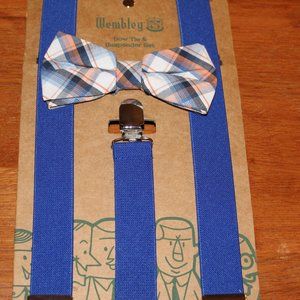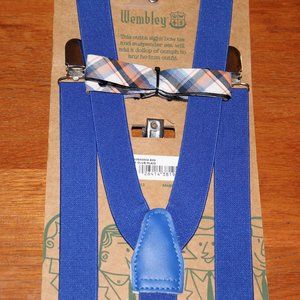 NEW Men's Wembley Bow Tie & Suspender Set Blue Plaid