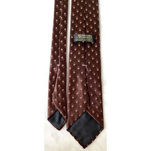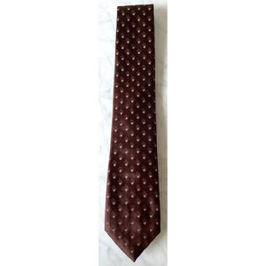 Wembley vintage neck tie is brown with light brown and white dots. Made with Wemlon fabric: Crush It, Knot It, Even Wash It. 55" long, 3" wide. Please see the pictures for the details.
