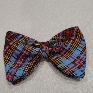 Wembley Vintage Oversize Double Polyester Bow Tie Blue Red Plaid RockaBilly 1123