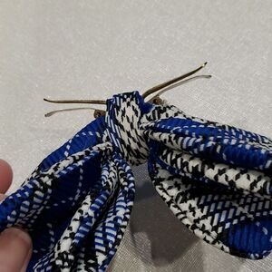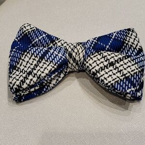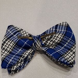 Wembley Vintage Oversize Double Bow Tie Polyester Blue Plaid RockaBilly 1123