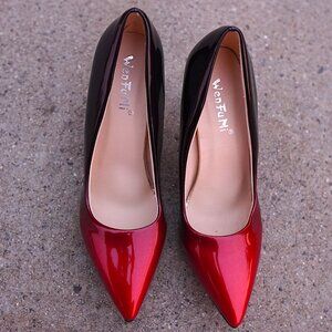 Wen Fu Ni Size 42 Red Black Ombre Pointed Toe Pumps Dress Shoes Heels