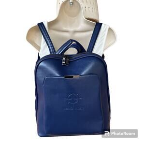 Outside the bag is a magnet close patch pocket with logo embossing and zip close pocket that rests against your back. Straps are adjustable. Hardware is a polished silvery-black color.