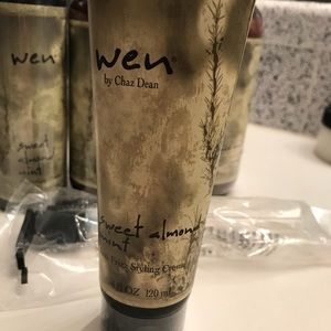 This set comes with two shampoos a styling moose and an anti frizz styling cream. It is sweet almond mint scented. I paid $108 for the set originally. Never opened. Brand new.