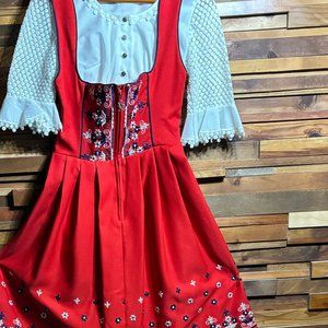 Note: the blouse piece is not full length, rather it hits just below the bust line. Blue piping on the top portion.