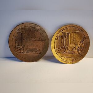 Vintage Wendell August Forge Ancient Roma Bath & Indoor Plumbing Bronze Plates (2)