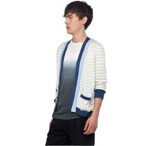 Wendi Reed Men's Cashmere Cotton Cardigan Sweater 1 S Stripe Button V-Neck