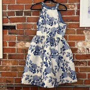 Wendy Bird Modcloth Ivory/Blue Floral Full On Graceful Dress size 10
