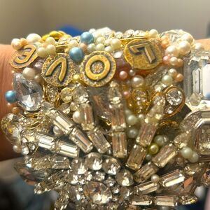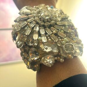This stunning bracelet features a dazzling array of crystals and pearls, perfect for adding a touch of elegance to any outfit. The silver and gold tones complement the intricate design, making it a standout piece in your jewelry collection. This is a Collectors Item.