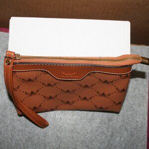 Wendy Keen Signature Brown Zip Closure Wristlet Womens Pouch Bag