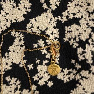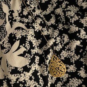 A delicate filigree necklace by Wendy Mink. Pear- or tear-shaped pendant on a dainty chain.
