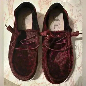 Wendy Scarlett Rare Velvet Maroon Leopard Print Hey Dudes Women’s Size 6