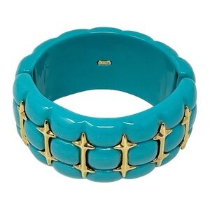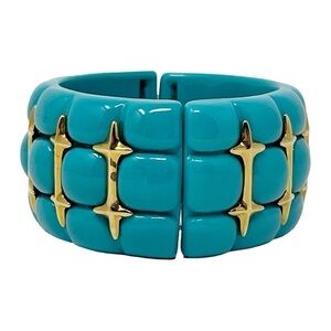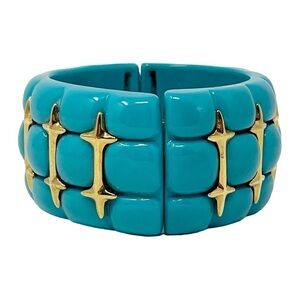 Wendy Williams Stretch Cuff Bracelet Turquoise Color Lucite Gold Tone Accents