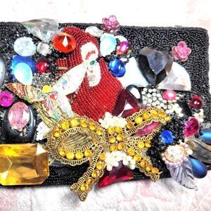 Jessica Rabbit in Beads on a black beaded purse with Swarovski jewels and Yellow Bow. Very unusual and collectible.