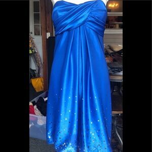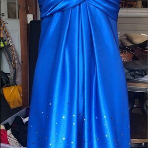 Wendye C Jump Apparel blue dress 27 inches long with sequins and balloon bottom