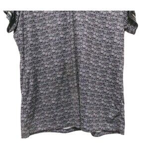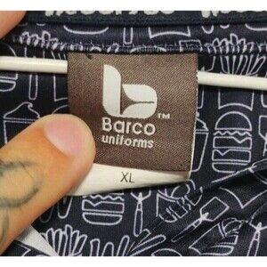 The product is a men's XL blue geometric print polo shirt designed as an employee uniform for Wendy's. Made of lightweight and breathable polyester material, the shirt features a collared neckline, short sleeves, and a pullover closure. The shirt is machine washable and has a relaxed fit, making it suitable for all seasons and activities. The logo accents on the shirt add to its workwear and brand theme, perfect for those working in the food and drink industry.