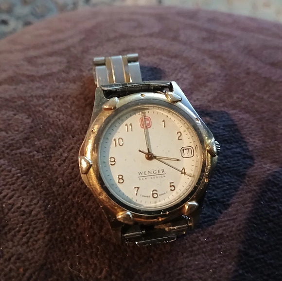 two toned unisex swiss made wrist watch by Wengar. Intricately designed and produced, light weight yet durable with a sleek feel. Stainless steel. Gold and silver toning throughout! Neccassary timepiece for almost all watch collections based on history and stylish design made by some of the greatest watch makers.