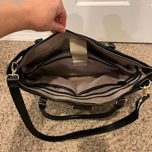 The interior zippered pocket keeps essentials safe and the removable adjustable shoulder strap offers comfort and flexibility. If you’re traveling with multiple bags, the rear pocket unzips to become a pass through trolley sleeves that slides over wheeled luggage handles for easy maneuverability.