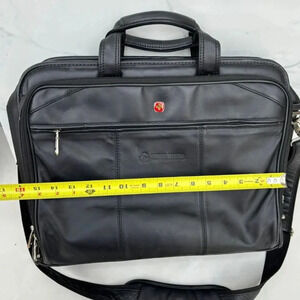 Wenger Mens Executive Leather Briefcase Laptop Bag Black Size 16"x12"