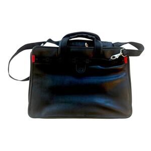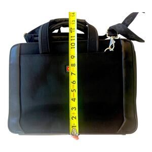 Stylish Wenger Swiss Gear briefcase built for business and travel. Black ballistic nylon with smooth leather-style trim, Swiss cross hardware, and detachable shoulder strap. Interior organizer with calculator, card slots, pen loops, and original Wenger Matterhorn notepad. Excellent pre-owned condition—ready for your next trip or office commute.