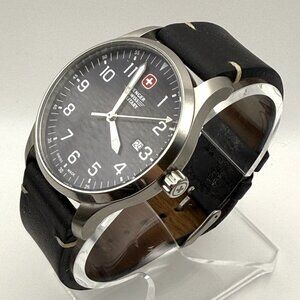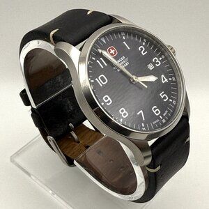 Beautiful Great condition Wenger Swiss Military Terragraph Men’s Black Leather Strap Watch Working, new battery installed.